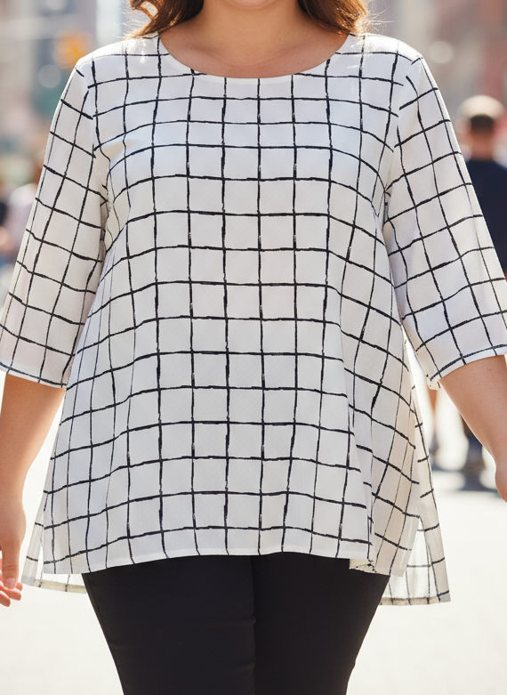 Elegantní dámská halenka značky M&S v bílé barvě s černým károvaným vzorem.