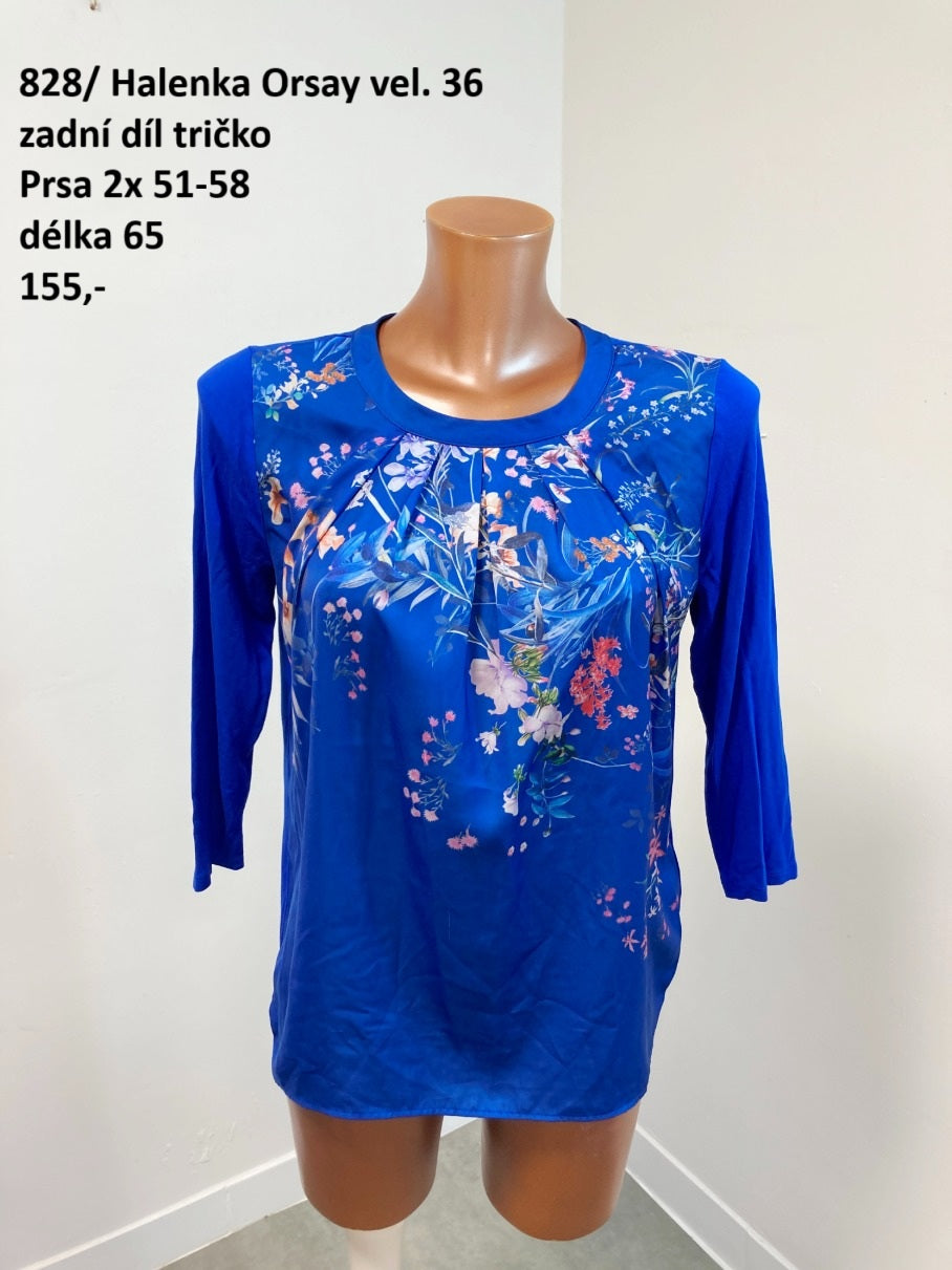 Elegantní dámská halenka značky Orsay ve velikosti 36 s nádherným květinovým vzorem, zadní díl je tričko.