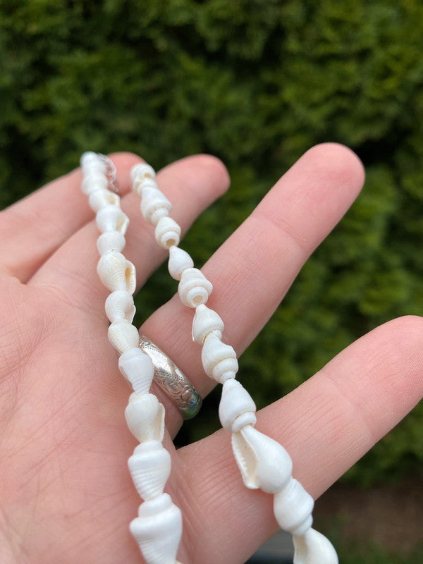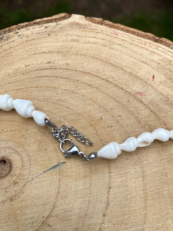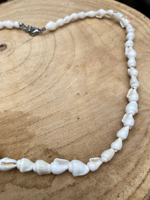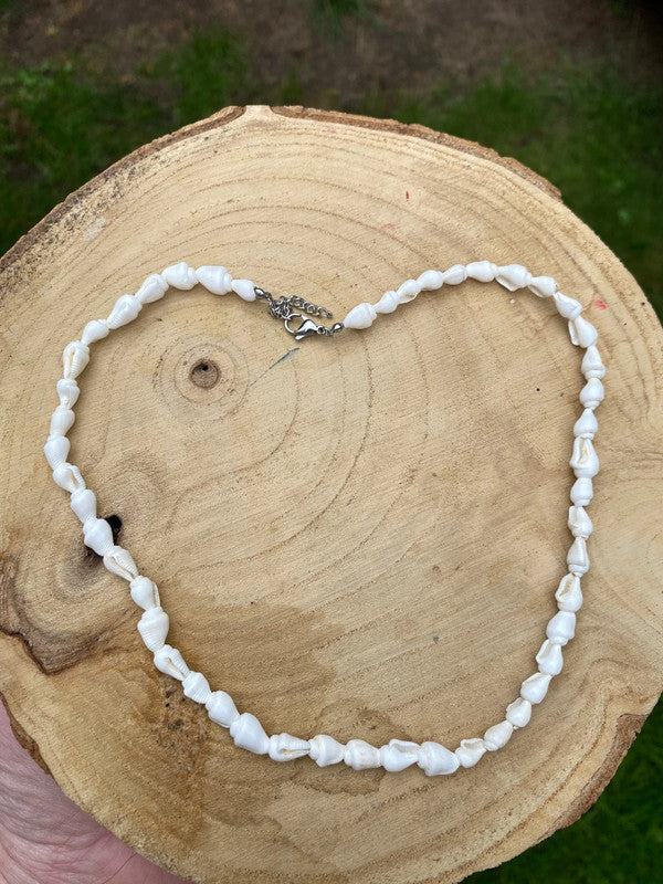 Jemny náhrdelník z mušliček a komponentu z chirurgické oceli. Ruční práce. Necerna apod. délka 42 cm + 5 cm řetízek