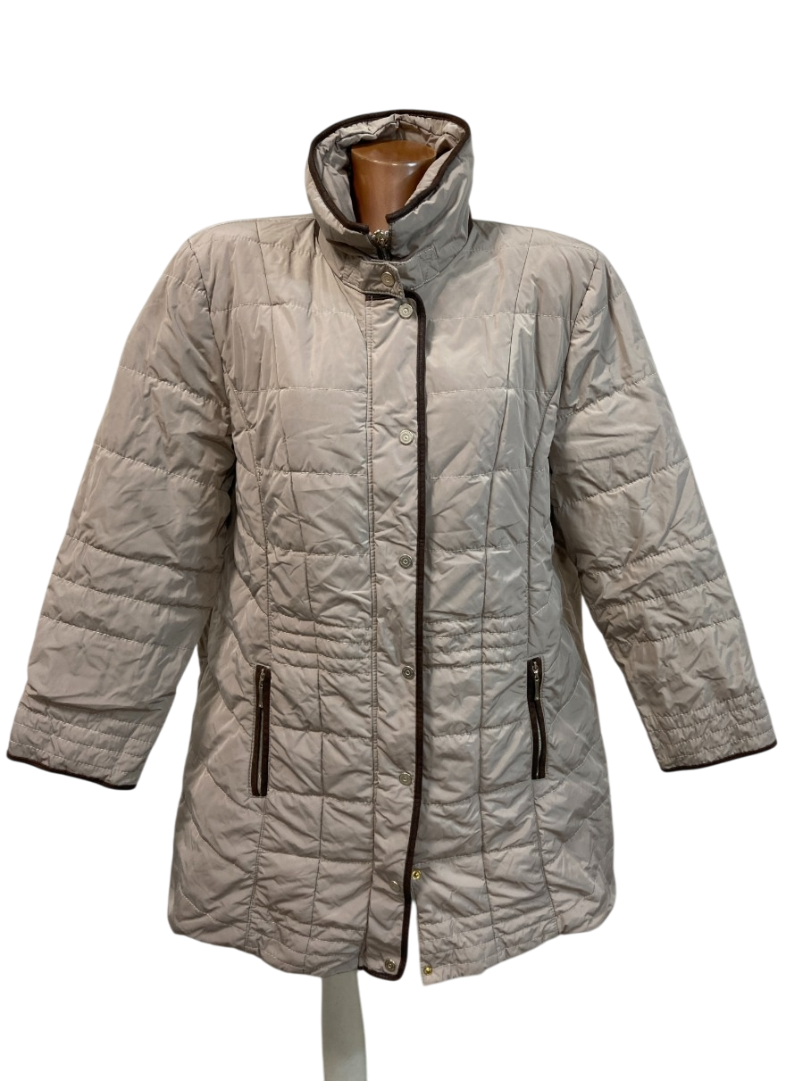 Teplý dámský prošívaný kabát značky Barbara Lebek ve velikosti 48 v béžové barvě.