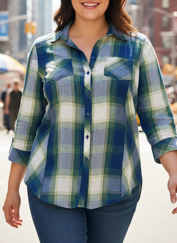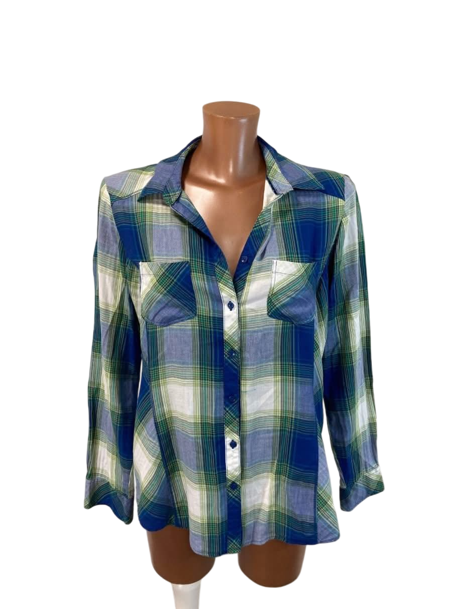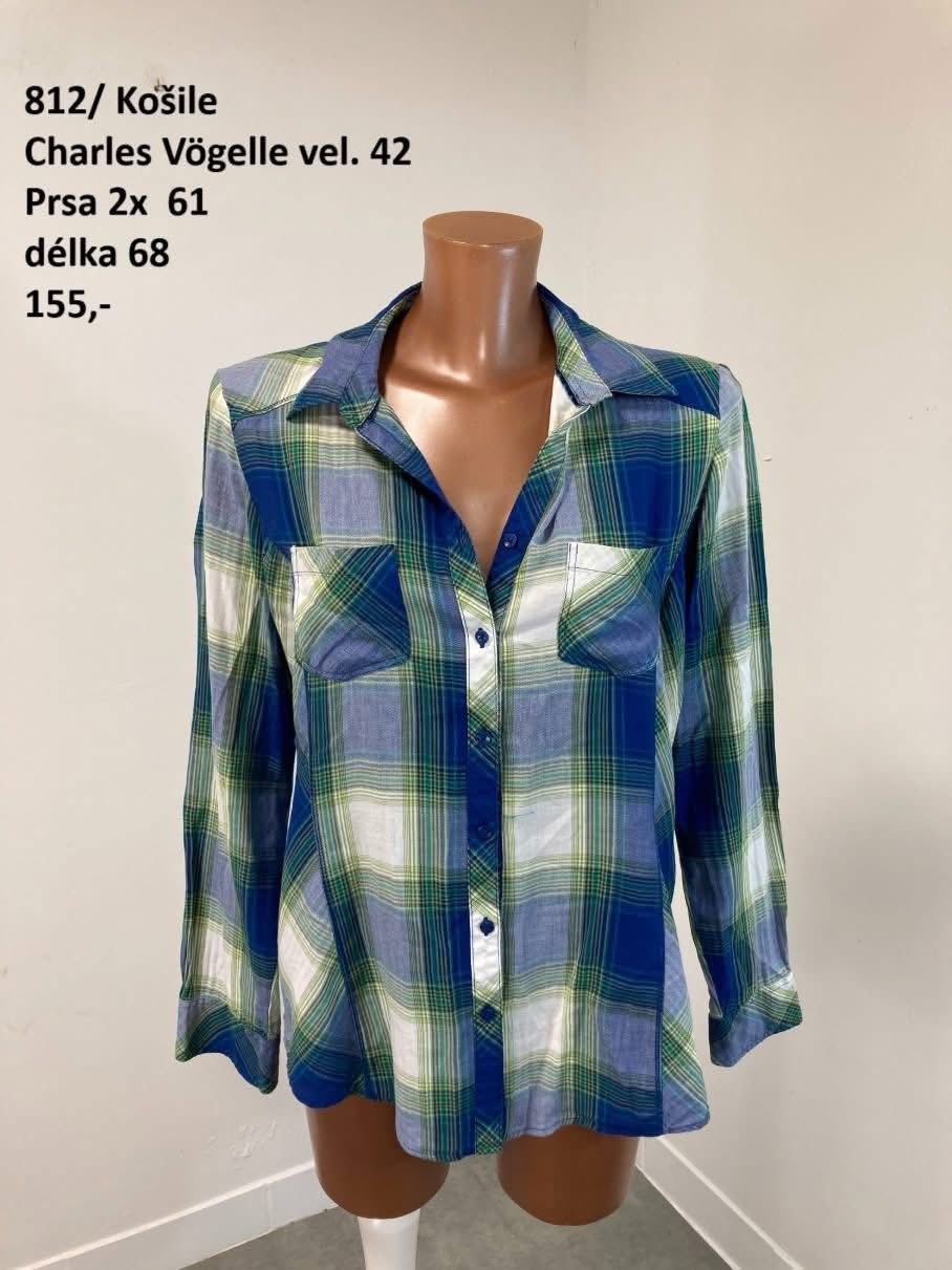 Stylová dámská košile značky Charles Vögelle v modro-zelené károvaném vzoru.