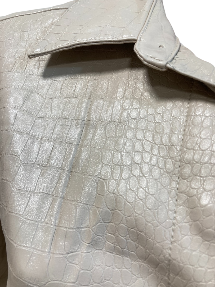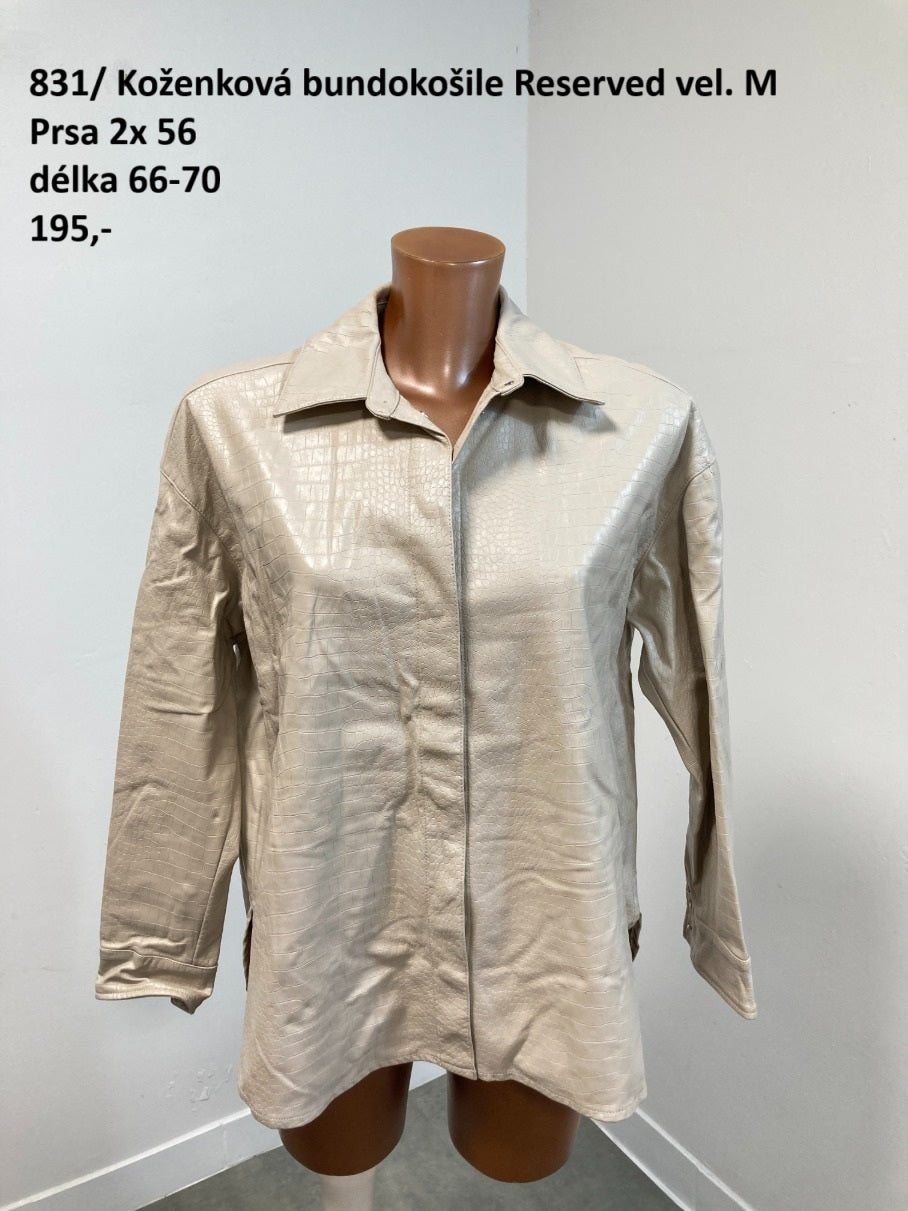 Stylová dámská koženková bundokošile značky Reserved ve velikosti M ve světle béžové barvě.