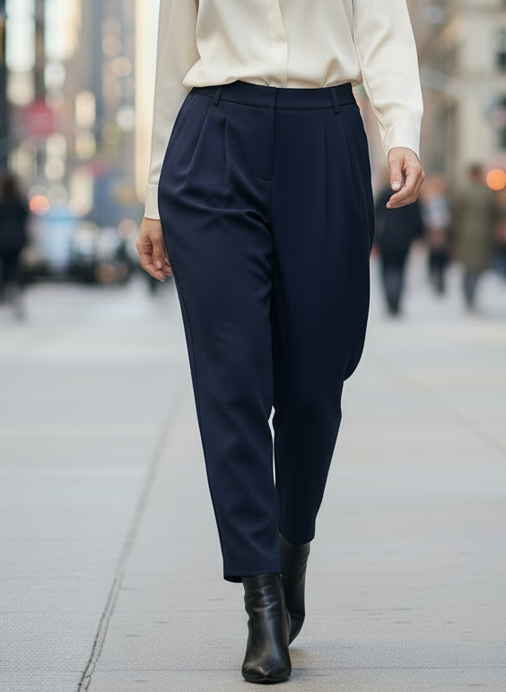 Elegantní dámské široké kalhoty značky About you v tmavě modré barvě s lehkým materiálem.