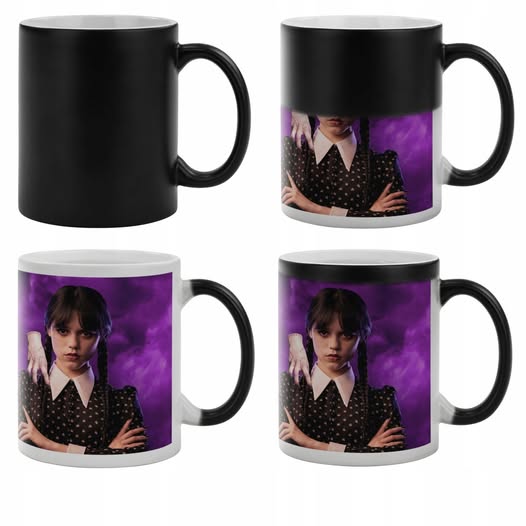 hrnek je černý, když nalijete teplý nápoj zobrazí se wednesday