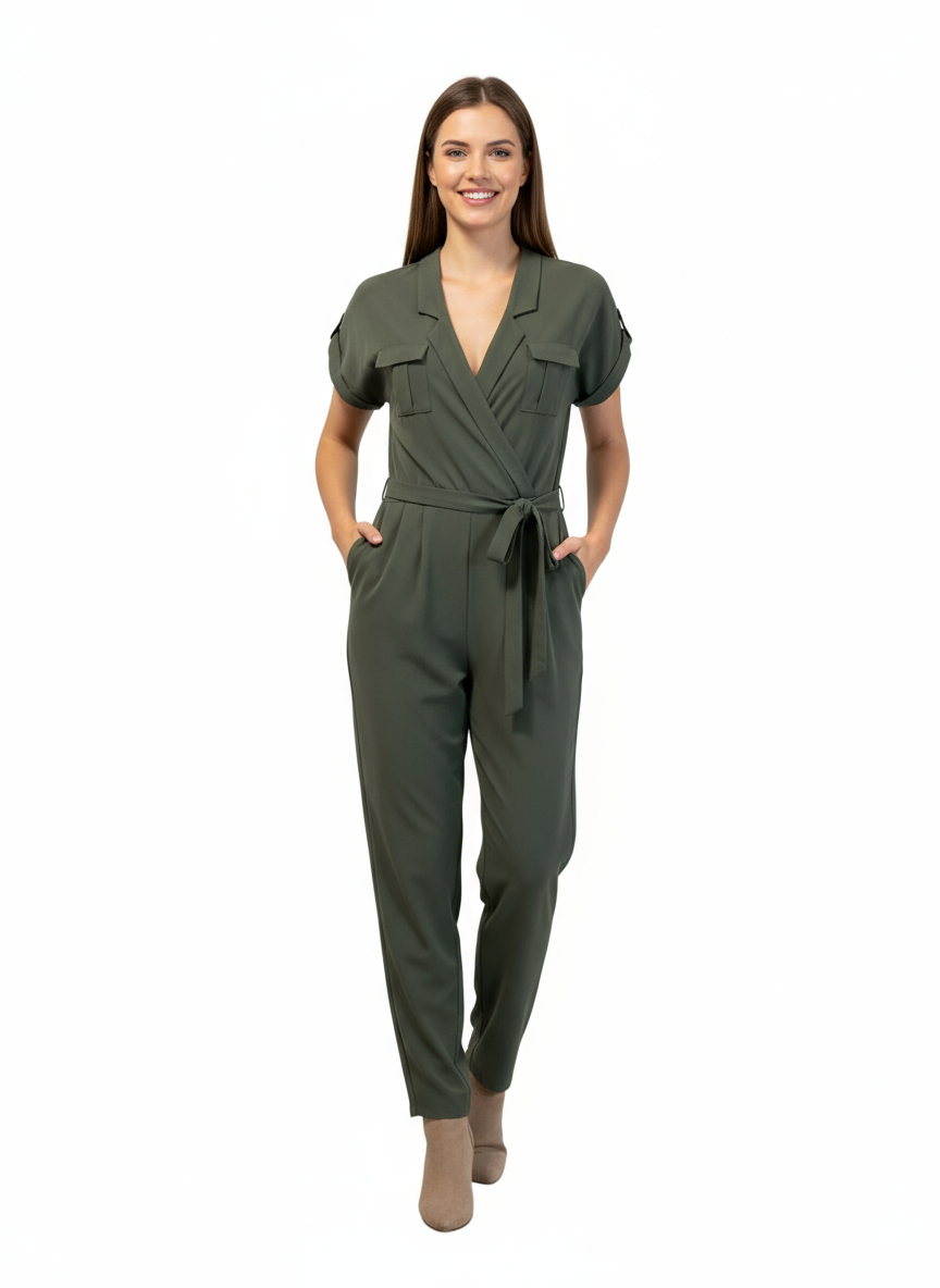 Stylový dámský overal značky Atmosphere ve velikosti 36 v elegantní khaki barvě.