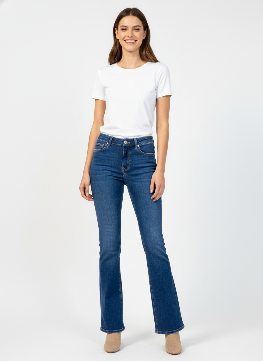 Stylové dámské džíny značky H&M ve velikosti 40 v modré barvě s rozšířenými nohavicami.