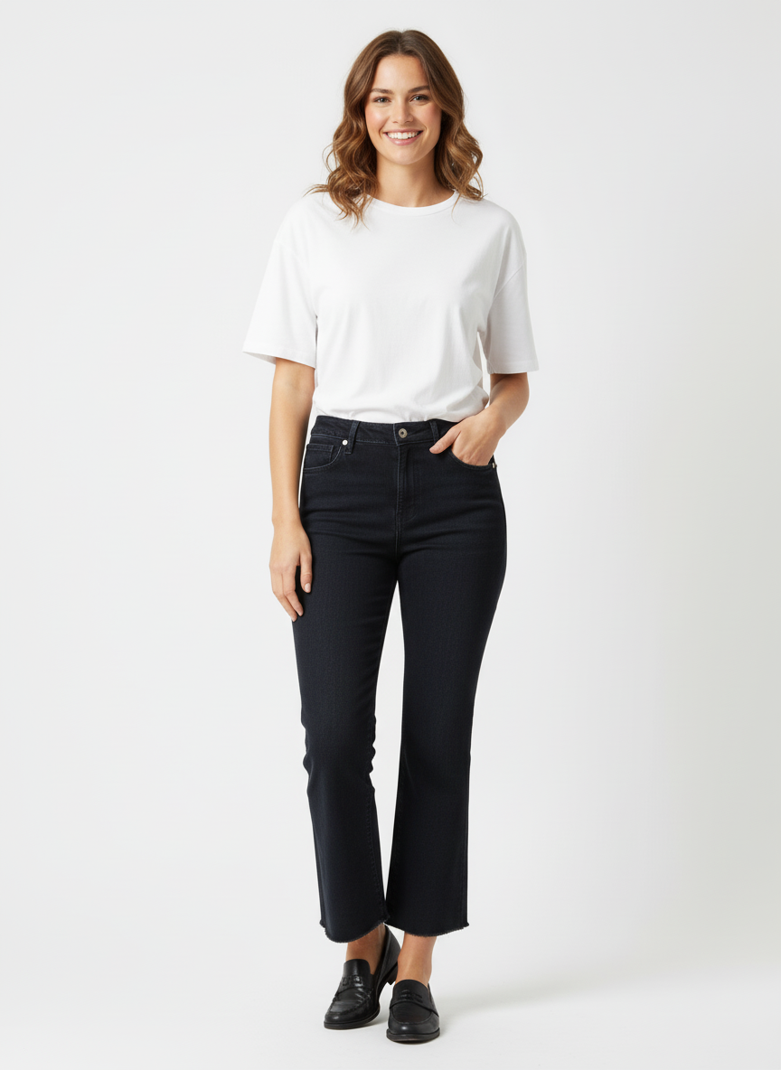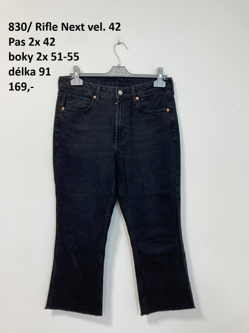 Stylové dámské džíny značky Next ve velikosti 42 v tmavě modré barvě s rozšířenými nohavicami.