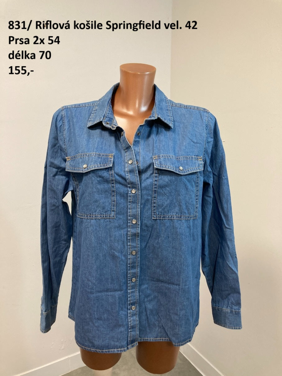 Stylová dámská riflová košile značky Springfield ve velikosti 42 v modré barvě.