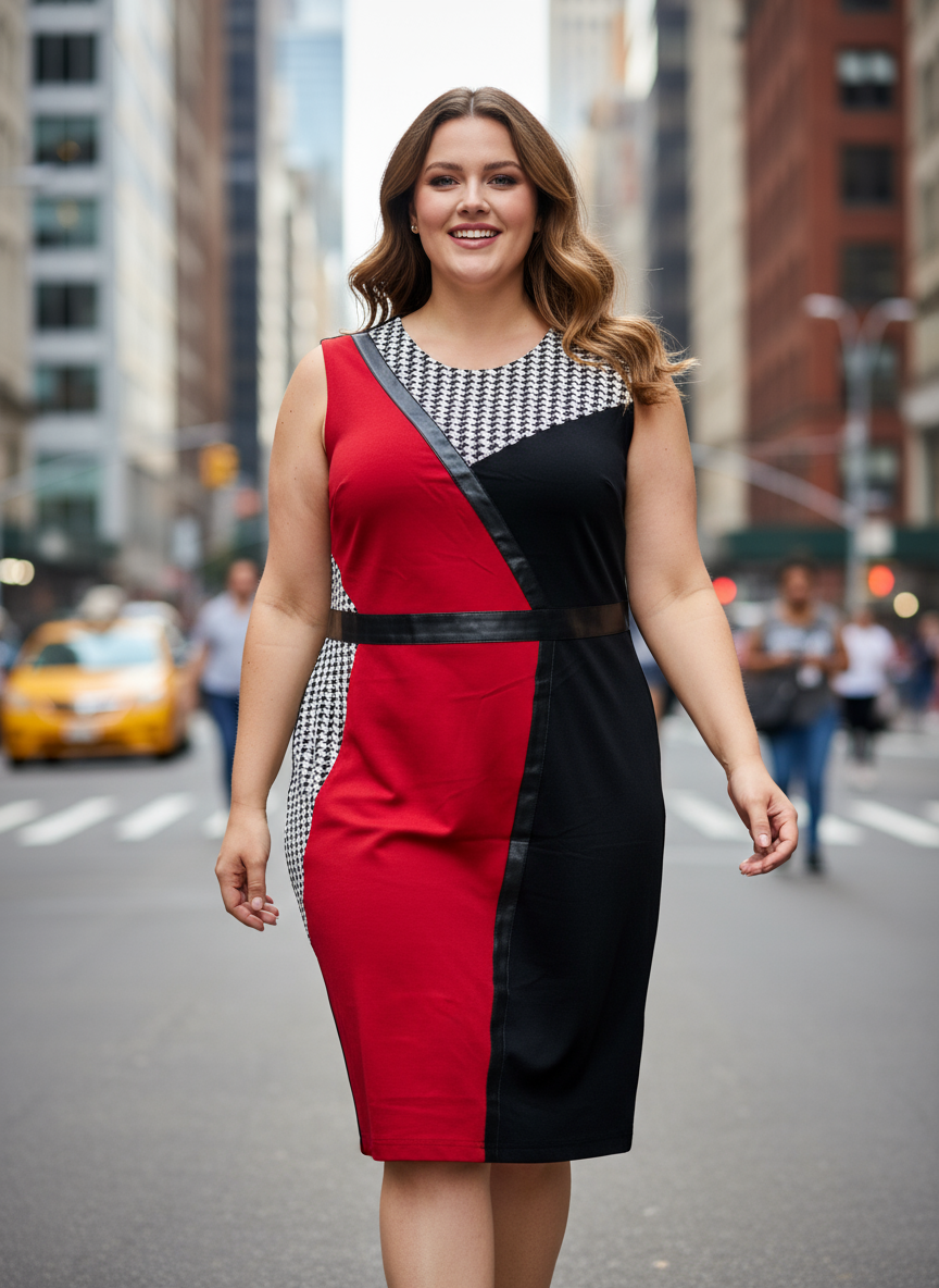 - Kombinace červené, černé a bílé barvy s pepitovým vzorem