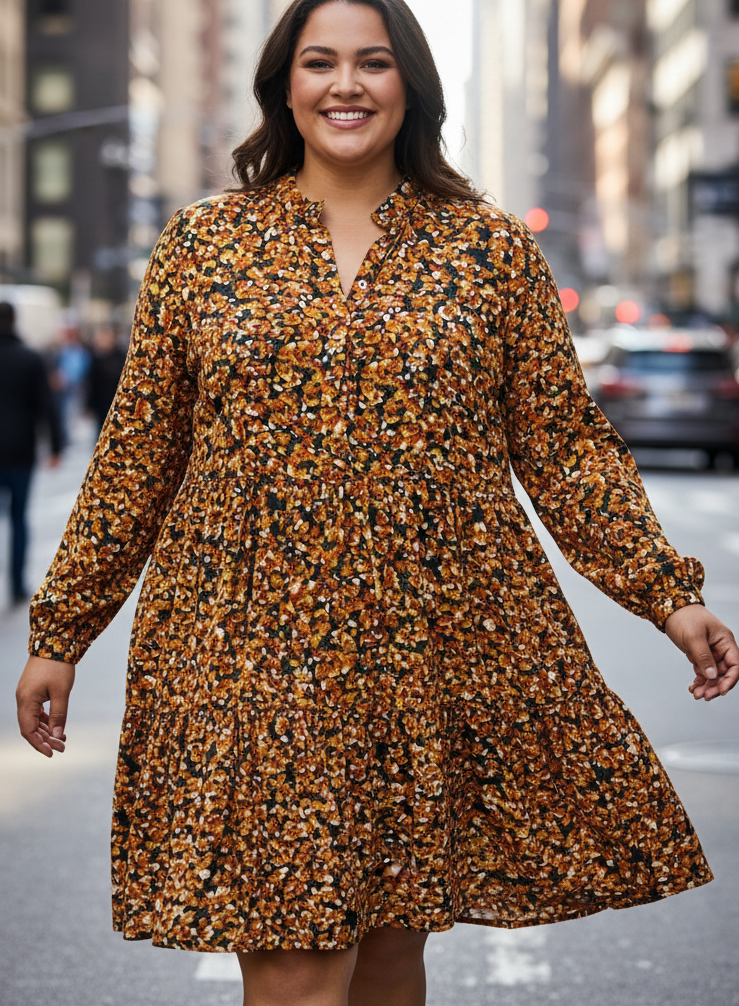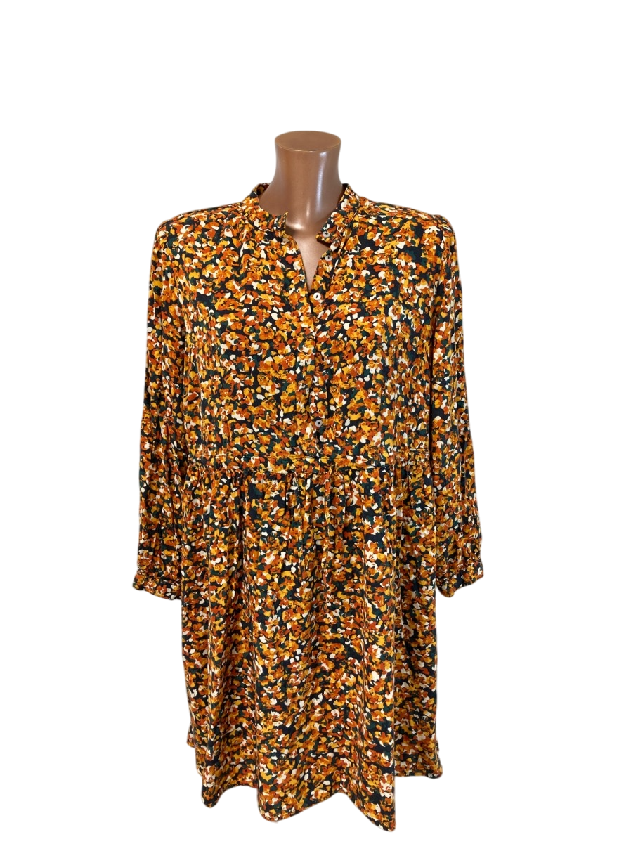 Krásné dámské šaty značky Esmara s podzimním květinovým vzorem v teplých barvách.
