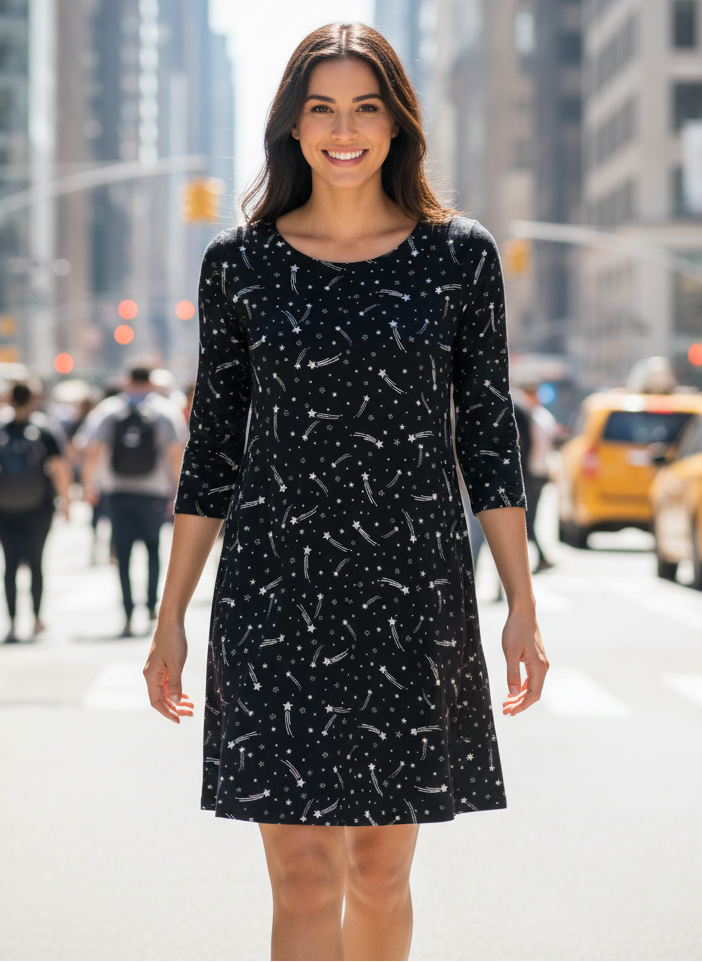Stylové dámské šaty značky George ve velikosti S s originálním hvězdným vzorem.