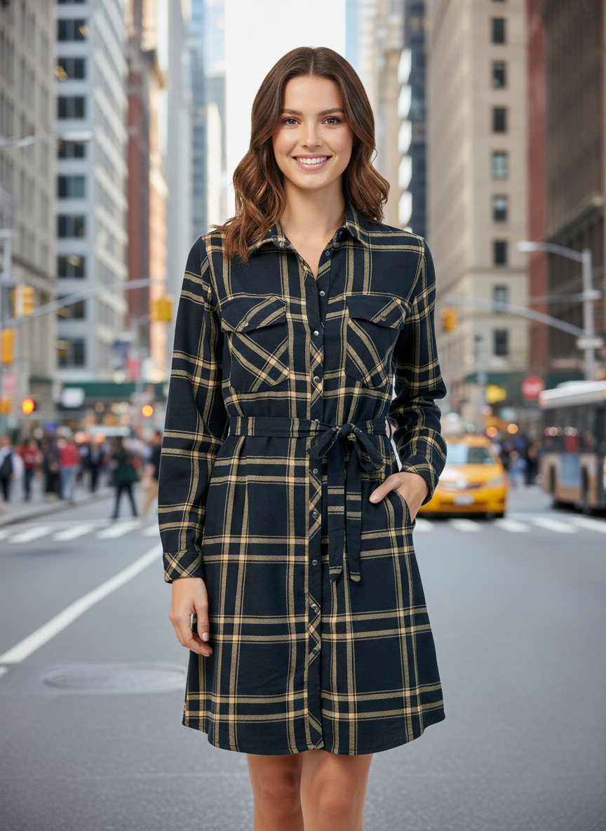 Stylové dámské šaty značky Jean Pascale ve velikosti 38 s károvaným vzorem a páskem.