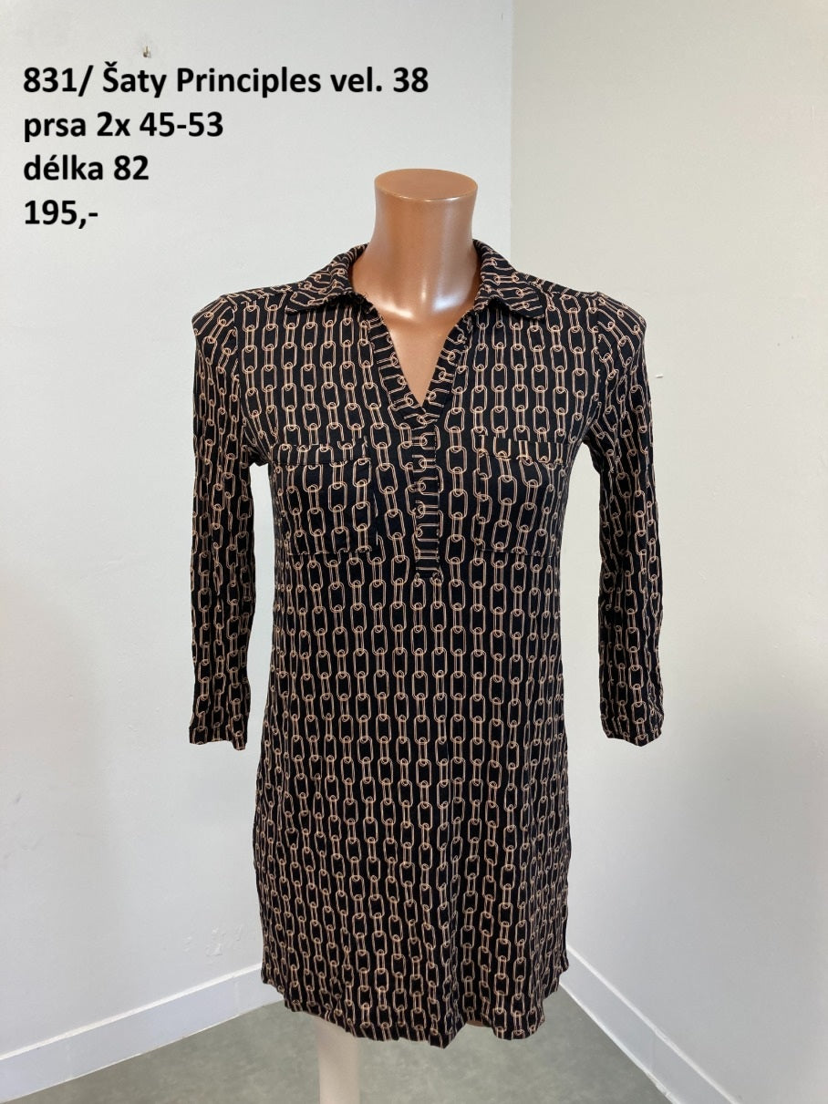 Elegantní dámské šaty značky Principles ve velikosti 38 s výrazným řetízkovým vzorem.