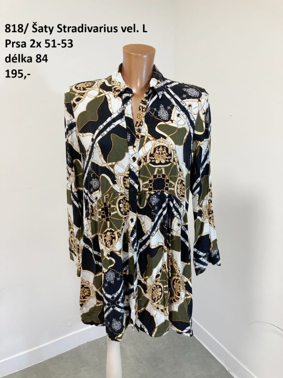 Elegantní dámské šaty značky Stradivarius ve velikosti L s nádherným barevným vzorem.