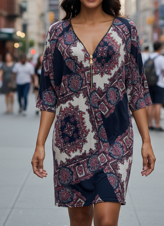 Elegantní dámské šaty ve velikosti 40/42 s orientálním vzorem.