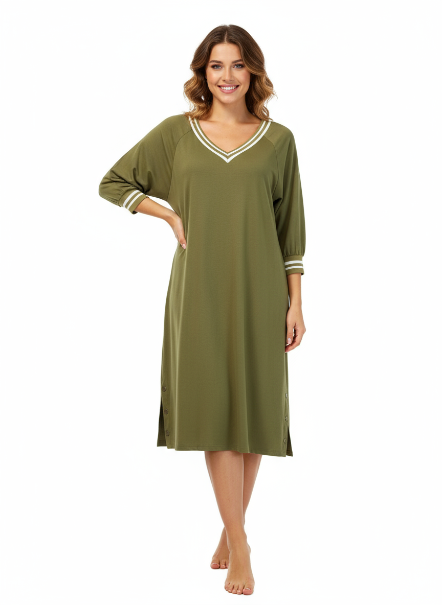 - Kontrastní bílé pruhy na výstřihu a rukávech