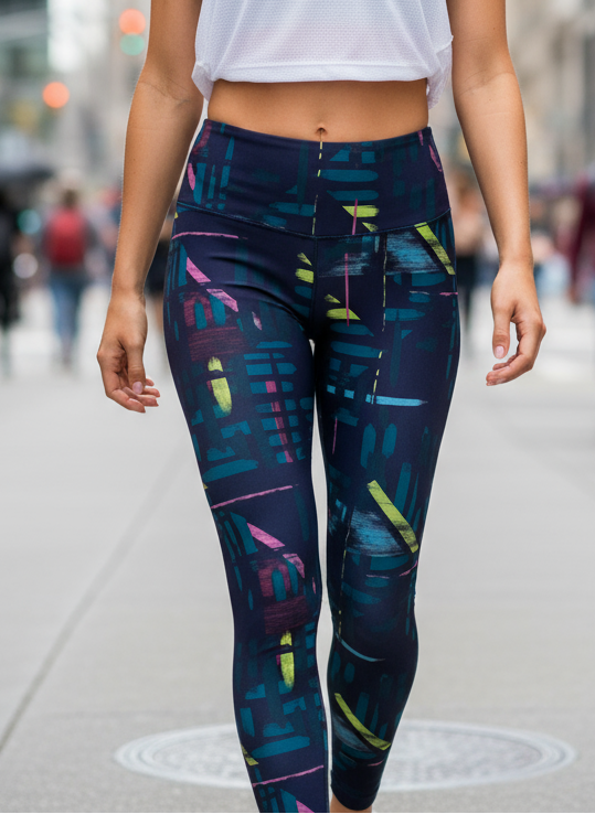 Stylové dámské sportovní legíny značky Next s barevným abstraktním vzorem.