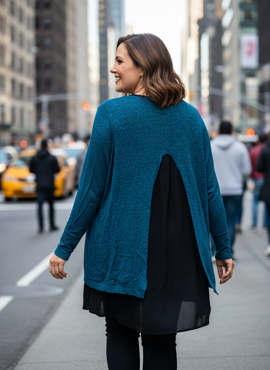Dámský svetřík značky George ve velikosti 54 v krásné petrolejově modré barvě.