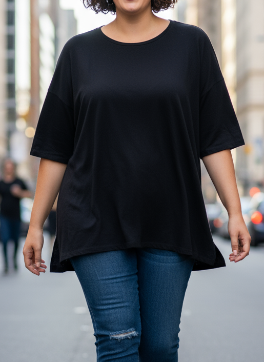 Klasické dámské tričko značky C&A v černé barvě s volným střihem.