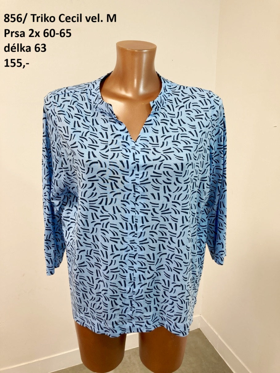 Stylové dámské tričko značky Cecil ve velikosti M ve světle modré barvě s abstraktním vzorem.