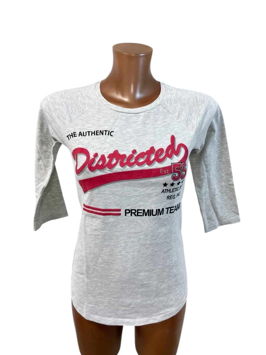 Sportovní dámské tričko značky FB Sister ve velikosti XS ve světle šedé barvě s nápisem.