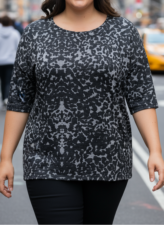 Stylové dámské tričko značky H&M s abstraktním vzorem v šedých tónech.