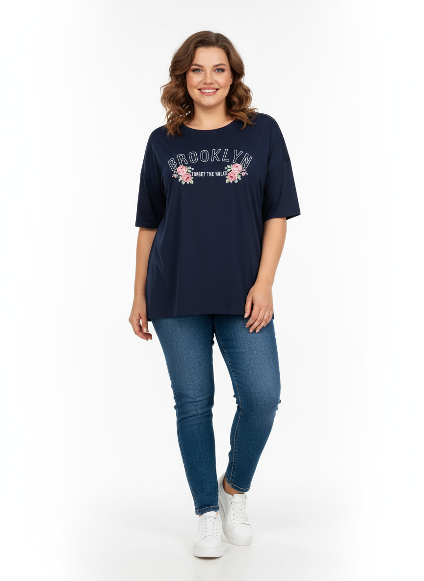 - Nápis 'BROOKLYN - FORGET THE RULES' s květinovým motivem