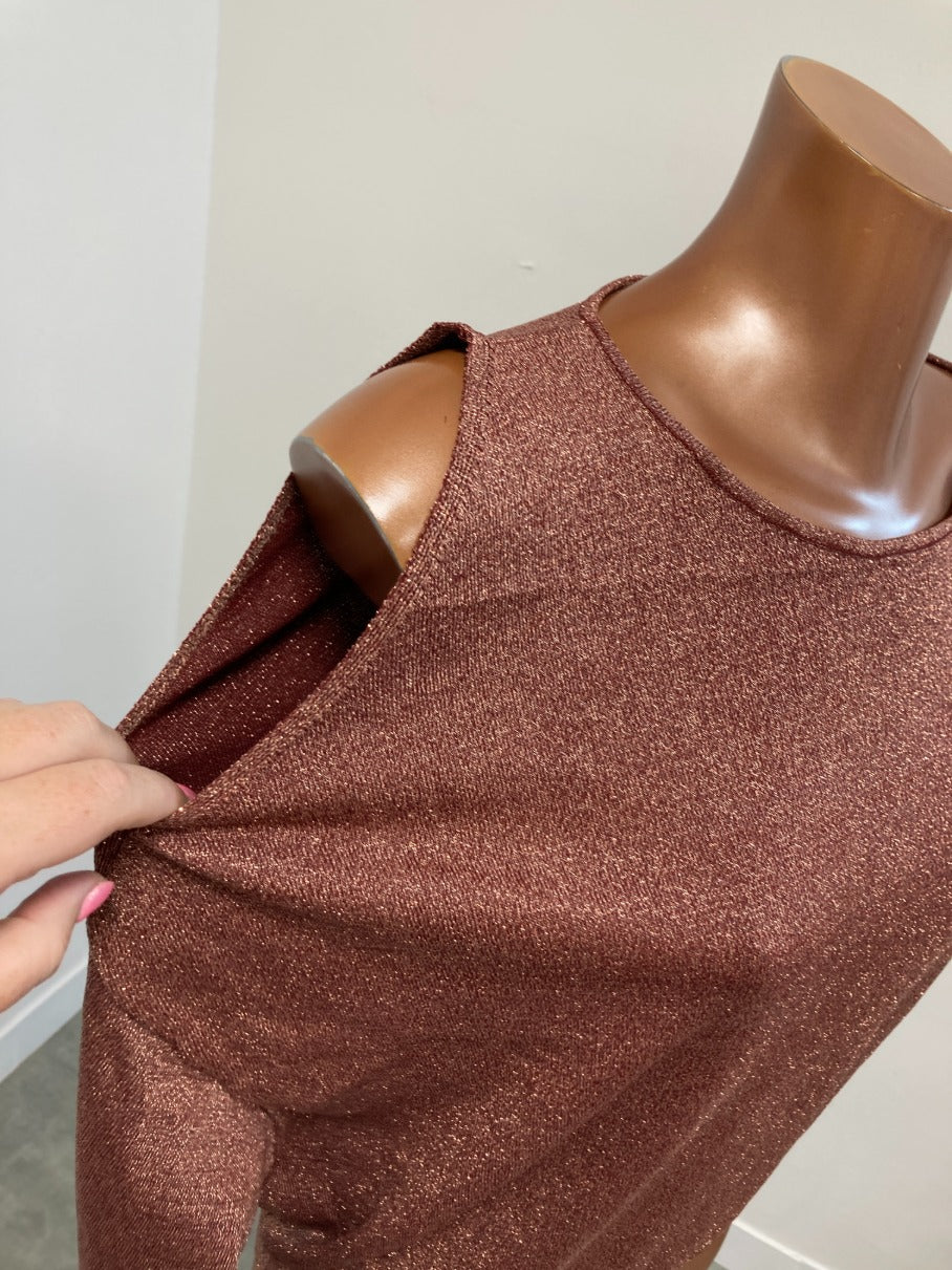 Efektní dámský třpytivý svetřík značky Pedro del Hierro ve velikosti L v měděně růžové barvě.